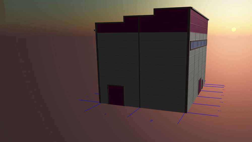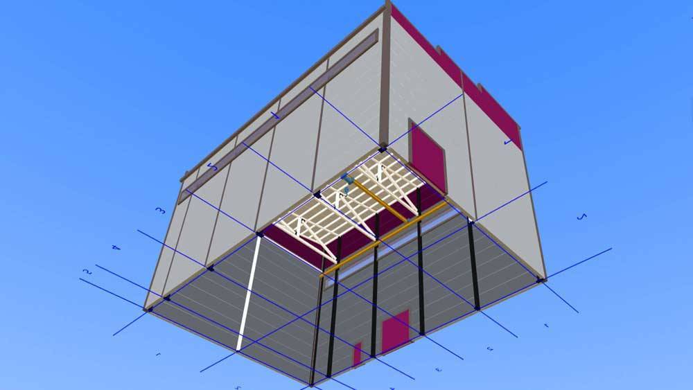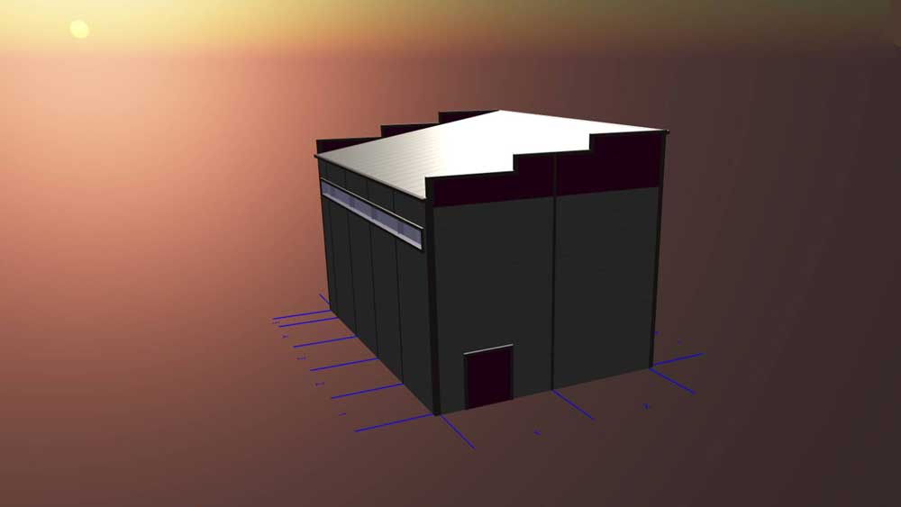 121. Быстровозводимый технологический павильон для станции биологической очистки 13х22х12