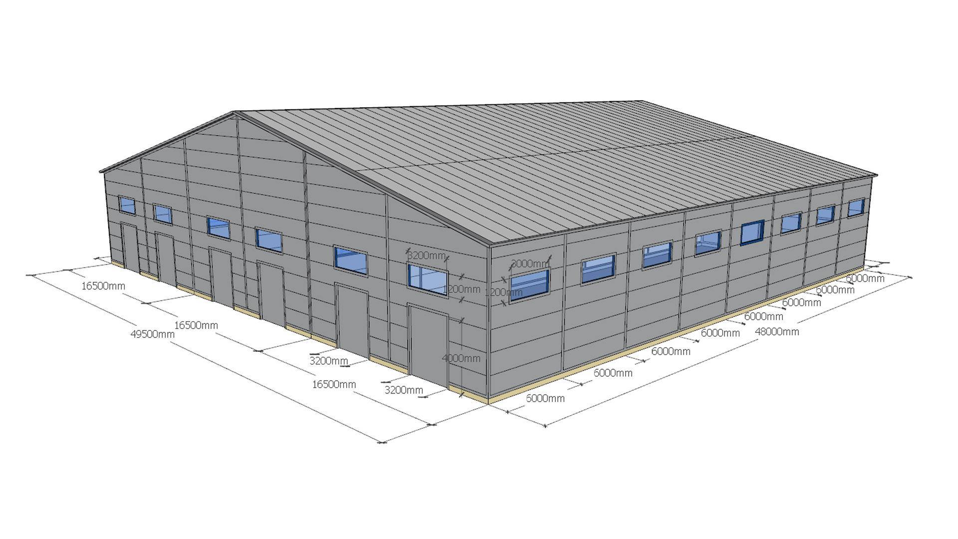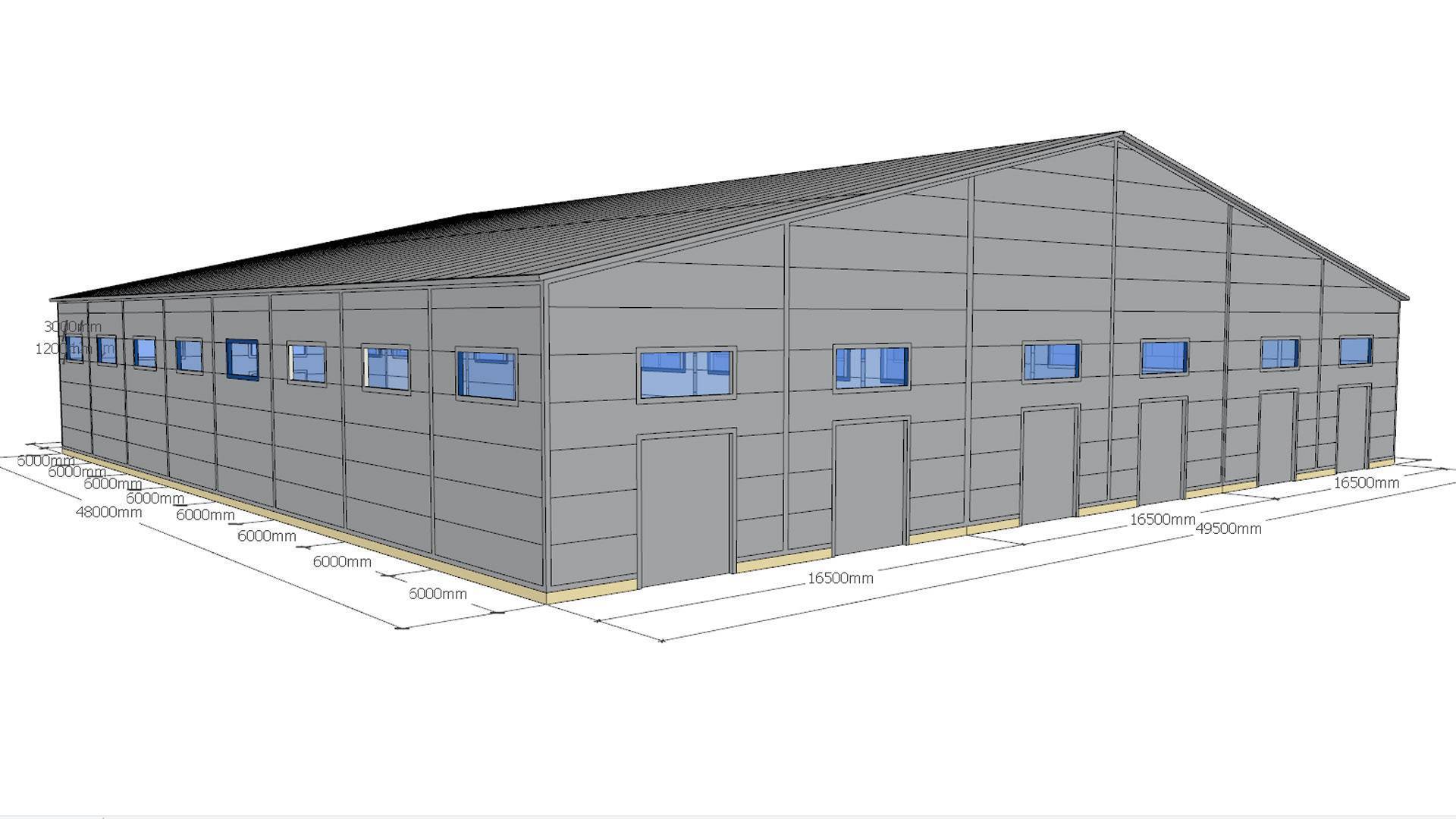 Быстровозводимый промышленный и складской комплекс 49.5х48х7 для изготовления защитных масок в г. Минск, Беларусь